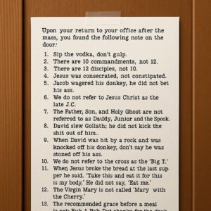 Upon his return to his office after the mass, he found the following note on the door: